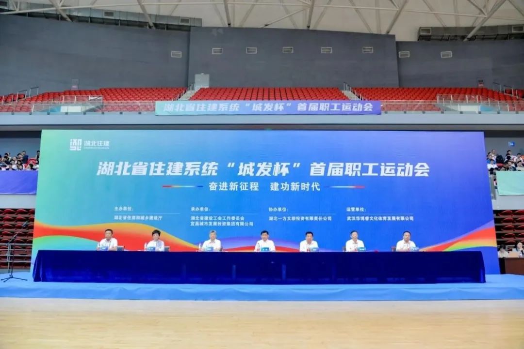 为进一步推进全省住房和城乡建设行业精神文明建设,活跃住建行业广大干部职工业余文化生活,更好的促进住建行业政企之间沟通交流。2023年9月15日,由湖北省住房和城乡建设厅主办的“奋进新征程,建功新时代”“城发杯”首届职工运动会在宜昌奥体中心盛大开幕。